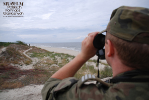Pokaż opis pliku 1. Tytuł tematu: patrol graniczny 2. Opis obrazu: funkcjonariusz z Placówki Straży Granicznej w Krynicy Morskiej podczas obserwacji wybrzeża 3. Data wydarzenia: 16.07.2008 r. 4. Osoby widoczne: brak danych 5. Hasła przedmiotowe: Straż Graniczna, ochrona fizyczna 6. Opis techniczny: zdjęcie cyfrowe, kolorowe 7. Autor: Krzysztof Niemiec 8. Miejsce przechowywania/właściciel: Archiwum Straży Granicznej w Szczecinie -