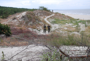 Pokaż opis pliku 1. Tytuł tematu: patrol graniczny 2. Opis obrazu: funkcjonariusze z Placówki Straży Granicznej w Krynicy Morskiej podczas patrolu granicznego na wybrzeżu 3. Data wydarzenia: 16.07.2008 r. 4. Osoby widoczne: brak danych 5. Hasła przedmiotowe: Straż Graniczna, ochrona fizyczna 6. Opis techniczny: zdjęcie cyfrowe, kolorowe 7. Autor: Krzysztof Niemiec 8. Miejsce przechowywania/właściciel: Archiwum Straży Granicznej w Szczecinie -