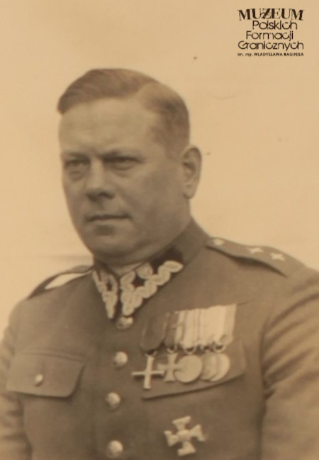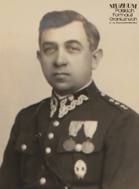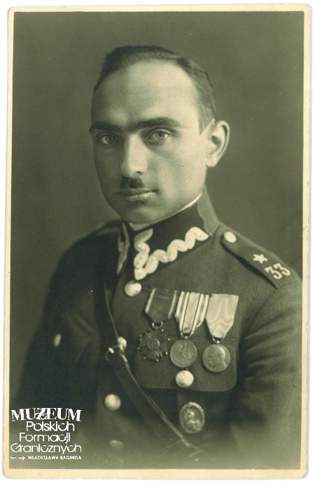 2. Opis obrazu: zdjęcie portretowe oficera pełniącego służbę w Batalionie KOP „Stołpce” (od 1937 r.). W lipcu 1939 r. powierzono mu obowiązki dowódcy 1 Pułku Piechoty Korpusu Ochrony Pogranicza w składzie I Brygady Górskiej