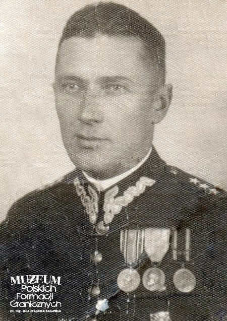 2. Opis obrazu: zdjęcie portretowe kapitana 12 Batalionu Korpusu Ochrony Pogranicza w Skałacie. Widoczne odznaczenia: Medal Dziesięciolecia Odzyskanej Niepodległości (pierwszy z prawej) Medal Pamiątkowy za Wojnę 1918-1921 (drugi z prawej), Krzyż Zasługi (drugi z lewej), Krzyż Walecznych przyznany dwukrotnie (pierwszy z lewej), Odznaka Pamiątkowa KOP „Za służbę graniczną” (na dole)