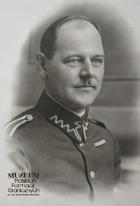 Pokaż opis pliku 1. Tytuł tematu: żołnierz Korpusu Ochrony Pogranicza 2. Opis obrazu: zdjęcie portretowe chorążego Feliksa Nadolskiego (6 Batalion KOP w Iwieńcu) 3. Data wydarzenia: II połowa lat 20. XX w. 4. Osoby widoczne: chor. Feliks Nadolski (1892 – 1943) 5. Hasła przedmiotowe: Korpus Ochrony Pogranicza, kadra 6. Opis techniczny: reprodukcja, czarnobiałe 7. Autor: brak danych 8. Miejsce przechowywania/właściciel: Archiwum Straży Granicznej w Szczecinie -