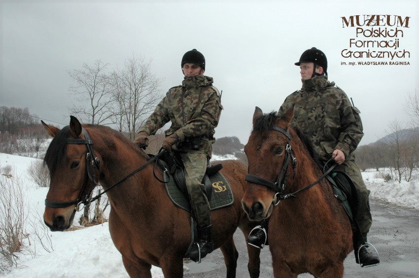 2. Opis obrazu: funkcjonariusze Straży Granicznej podczas patrolu konnego