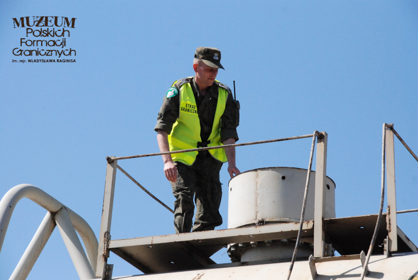 2. Opis obrazu: funkcjonariusz Straży Granicznej z Morskiego Oddziału SG podczas kontroli granicy polsko-rosyjskiej