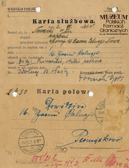 2. Treść: dokument z informacją dotyczącą przyjęcia szer. Jana Nowackiego, z 4 Kompani 16 Batalionu Celnego do Szpitala Okręgowego W.P. w Grudziądzu na oddział neurologiczny